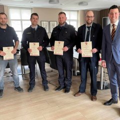 Zur ehrenamtlichen Führungskraft in der Freiwilligen Feuerwehr darf nur ernannt werden, wer die für die jeweilige Funktion erforderliche Ausbildung erfolgreich erfolgreich abgeschlossen hat. Diese Qualifikation stellt sicher, dass Führungsverantwortung im Einsatzfall kompetent und verantwortungsvoll wahrgenommen wird. Dazu wurden vier stellvertretende Wehrführer beauftragt, die nach erfolgreicher Absolvierung der Lehrgänge ernannt werden. Beauftragt wurden Robert Apke, Freiwillige Feuerwehr Hermespand; Stefan Bayerschen, Freiwillige Feuerwehr Schönecken; Christian Schmitz, Freiwillige Feuerwehr Watzerath und Björn Schaal, Freiwillige Feuerwehr Wawern.